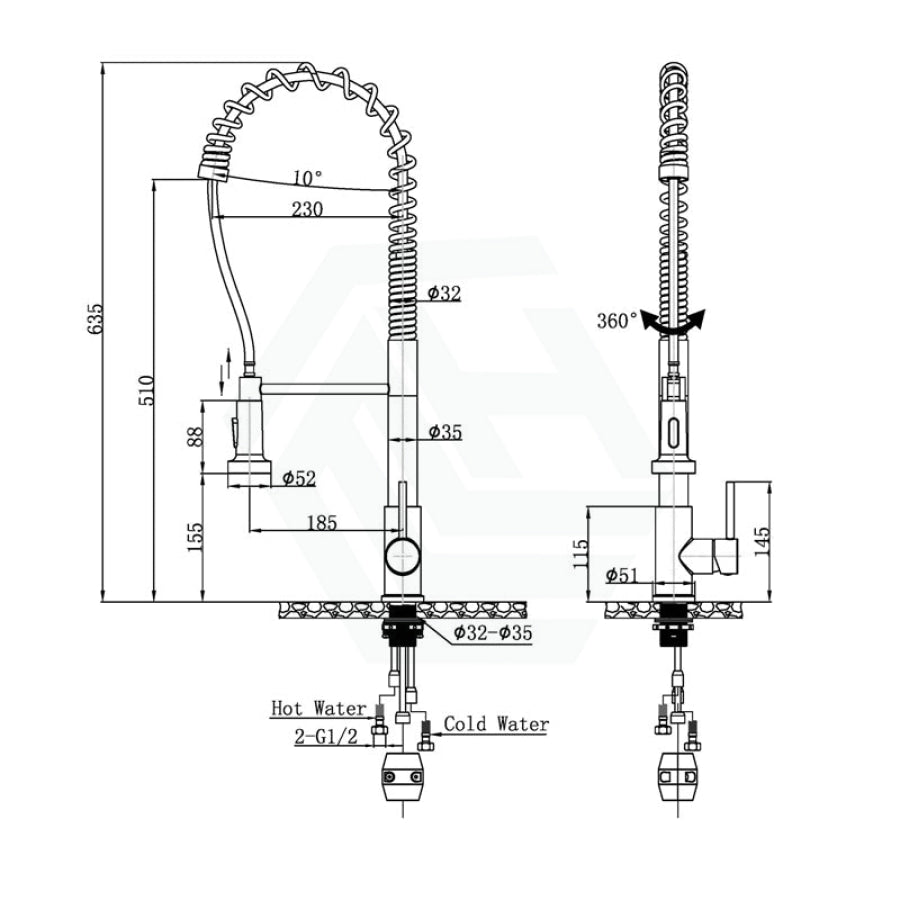- 304 stainless steel hot & cold water hoses
