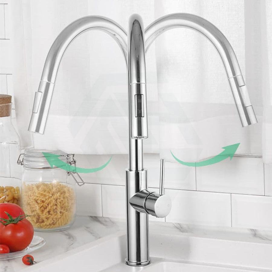 Chrome Solid Brass Round Mixer Tap with 360° Swivel and Pull Out and Spray Option for kitchen