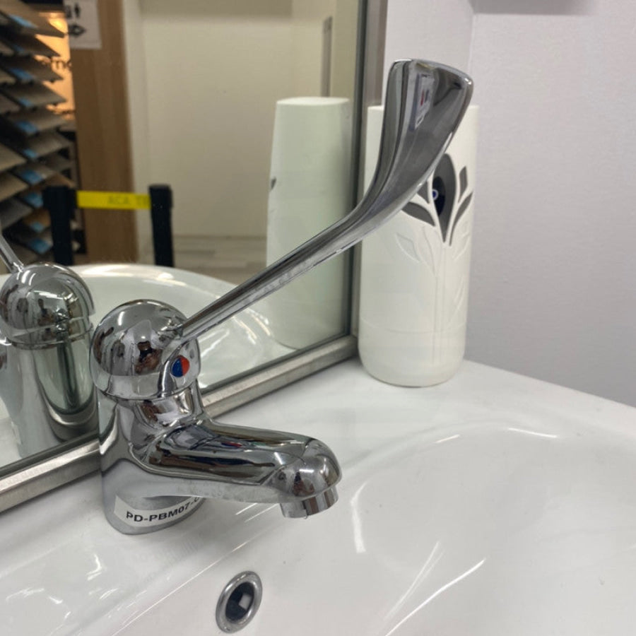 Chrome Solid Brass Basin Mixer with Extended Lever and Electroplating for Care and Disabled