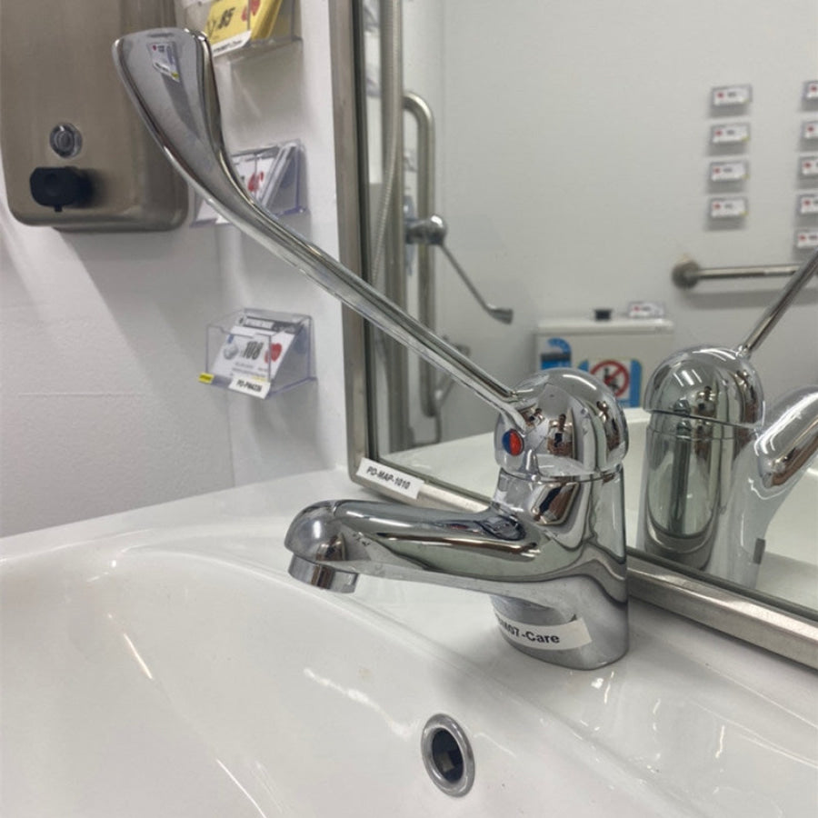 The Chrome Solid Brass Basin Mixer with Extended Lever and Electroplating for Care and Disabled would give a convenient and elegant addition to any bathroom.