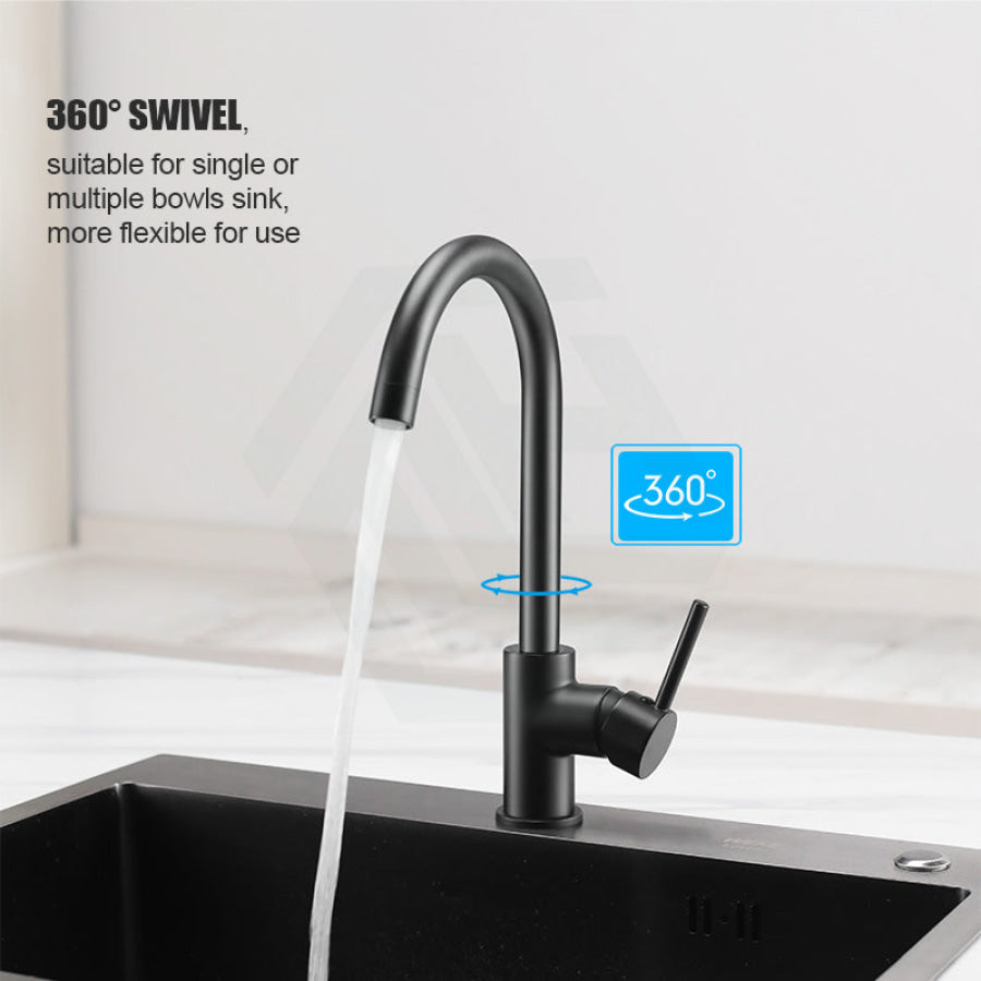Euro Round Electroplated Matt Black Kitchen Sink Mixer Tap 360° Swivel
