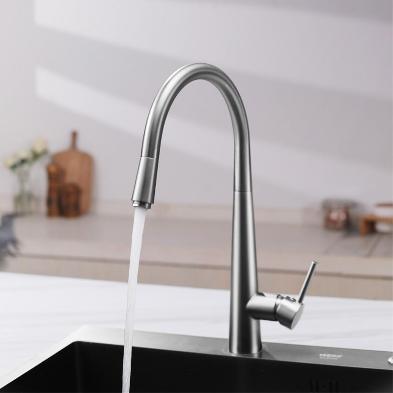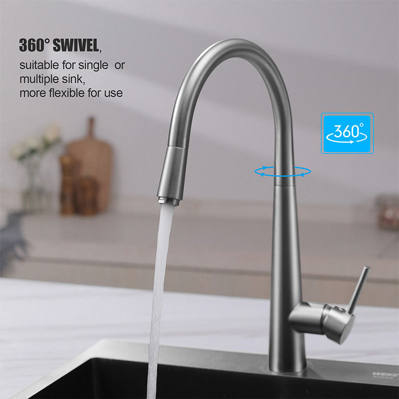 N#1(Nickel) Norico Round Brushed Nickel 360 Swivel Pull Out Kitchen Sink Mixer Tap
