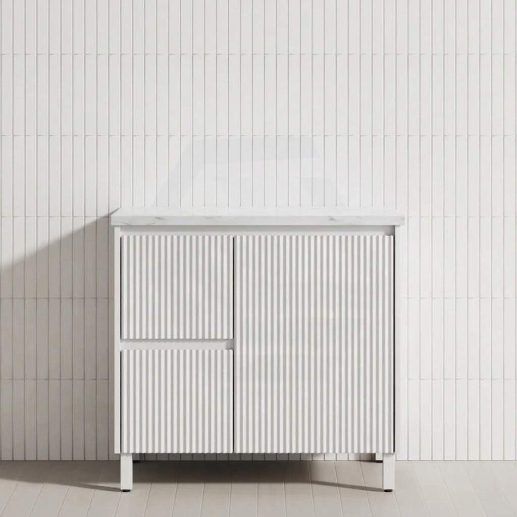 600-1500mm Ceto Brighton Freestanding Vanity with Legs Matt White PVC Board Cabinet ONLY Linear Surface