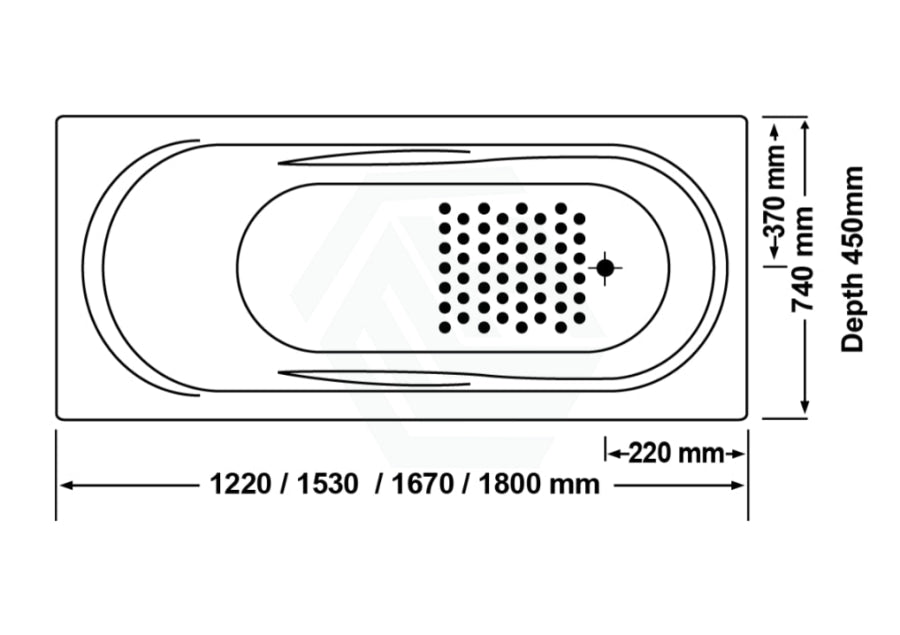 Broadway Allura Spa Bathtub 1530/1670/1800x740x450mm Rectangula Drop-in Tub