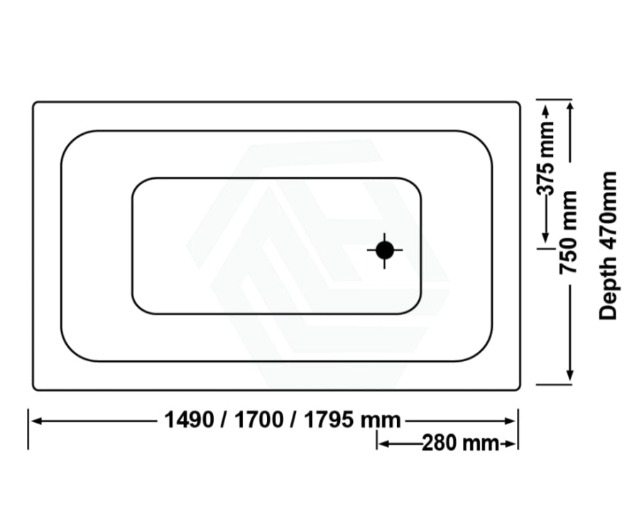Broadway Alpha B Spa Bath With Non-slip Base & Tiling Bead 1490/1700/1800x750x470mm Rectangula Drop-in Tub Shower Screen Friendly