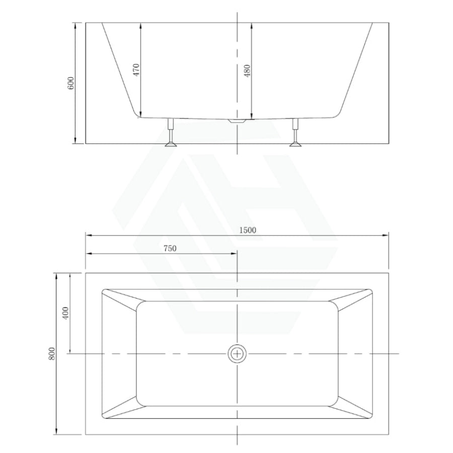 Broadway Ataud 1500/1700x800x600mm Rectangle Acrylic Freestanding Spa Bathtub