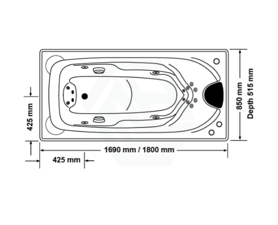 Broadway Elise Spa Bath 1690/1800x850x515mm Rectangula Drop-in Tub