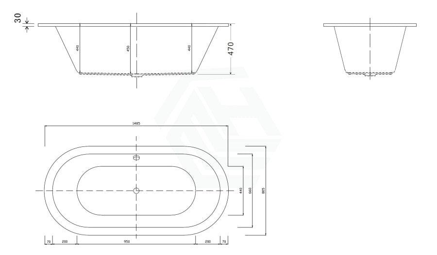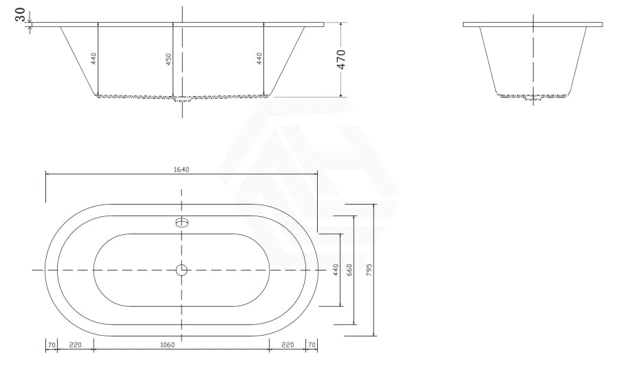 Broadway Florentine Spa Bath 1485/1640mm Oval Drop-in Tub