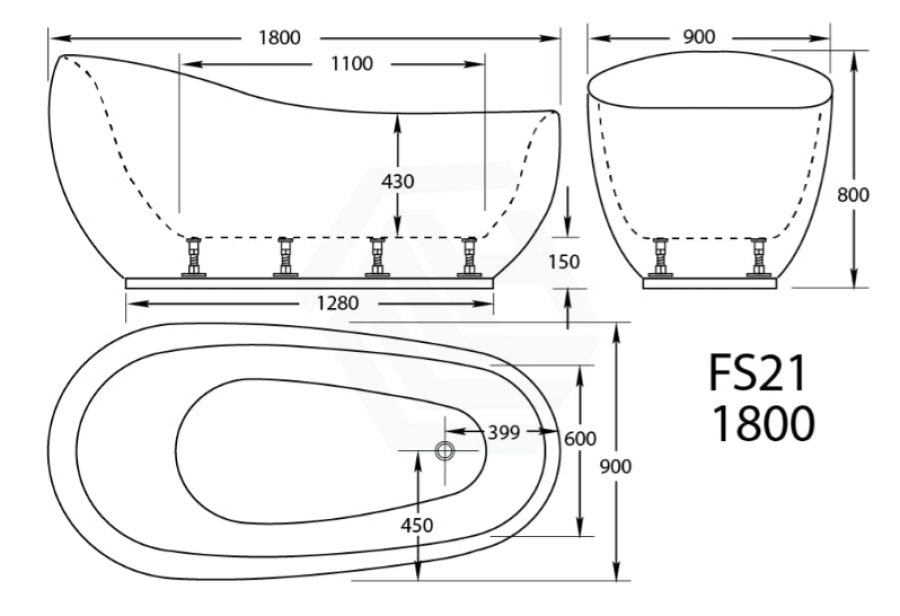 Broadway FS21 1800x900x800mm Oval Acrylic Freestanding Spa Bathtub