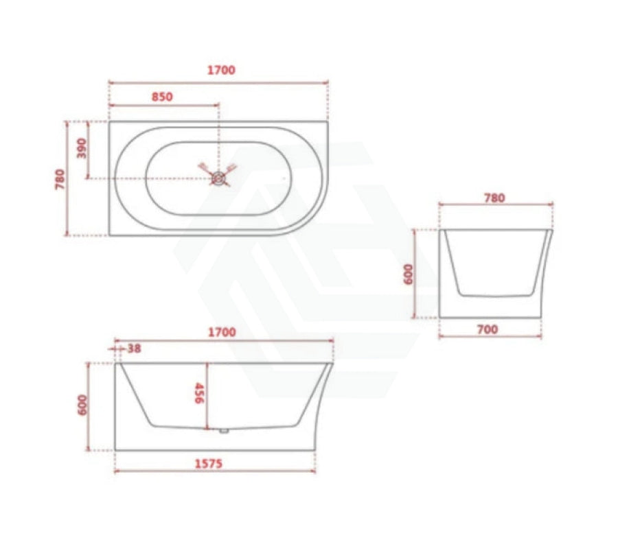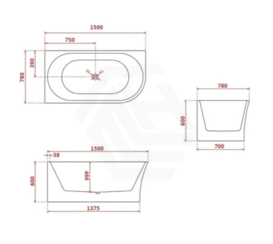 Broadway FS7 1500/1700x780x600mm Back to Wall LEFT Corner Spa Bathtub Acrylic