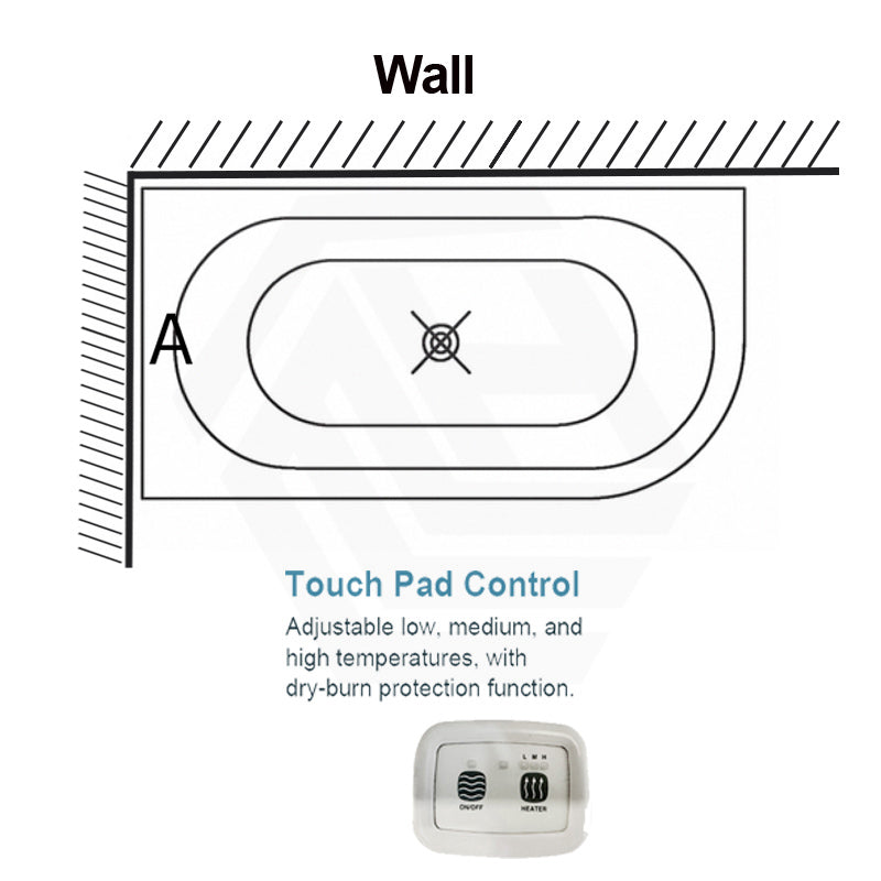 The FS7 Back to Wall Spa Bath offers a luxurious experience with 12 air jets for a gentle body massage. It features an Air Switch ON/OFF button and touch pad heat control. The pump includes a safety cut-out switch, ensuring both comfort and safety for your bathroom.