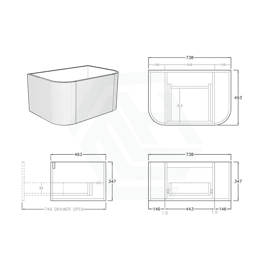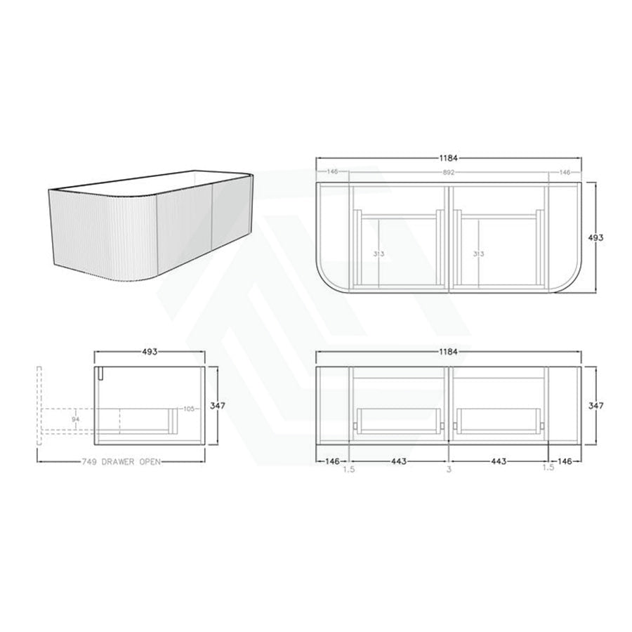 Please note that if you choose to drill holes for the tap at the 10 o'clock and 2 o'clock positions on the stone top, there is a high likelihood of encountering the partition panels inside the cabinet. In such cases, it will be necessary for your plumber to make cuts inside the cabinet.