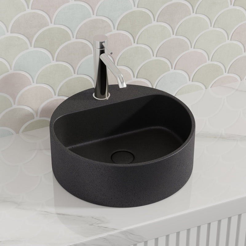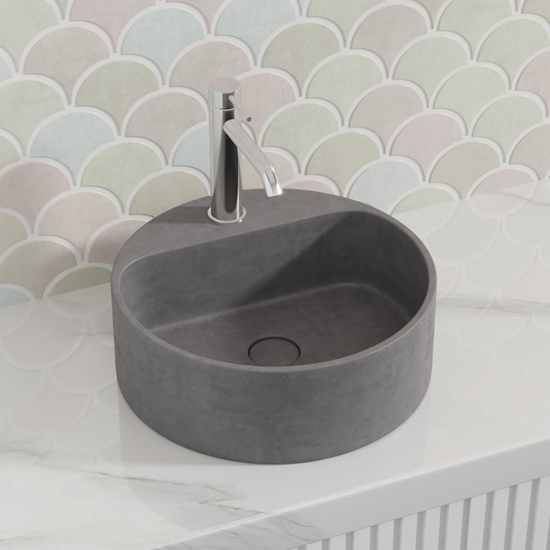 This 400x400x140mm round concrete basin is designed for above-counter installation, combining modern industrial aesthetics with functional durability. Its robust concrete construction ensures longevity while adding a unique textured appearance to your bathroom. The basin includes a pop-up waste, providing a seamless and convenient drainage solution. Ideal for contemporary spaces, this basin balances form and function, offering both style and practicality.