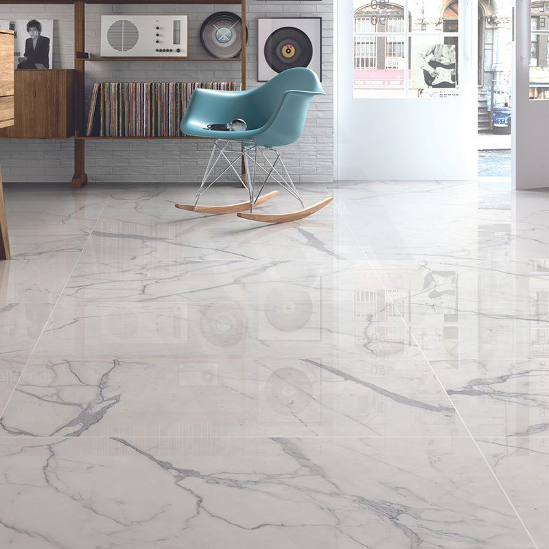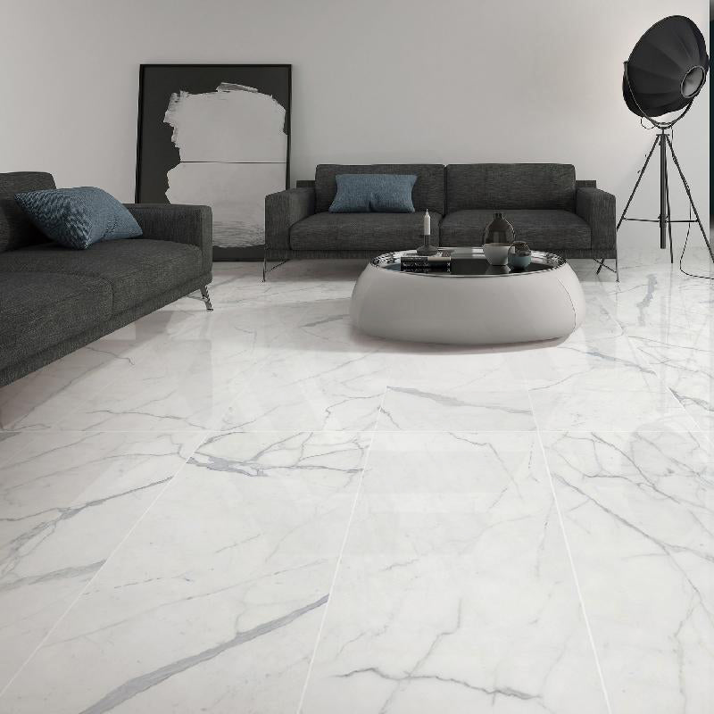Calacatta Deluxe Polished Marble Look Super White 300/600/1200 Tile