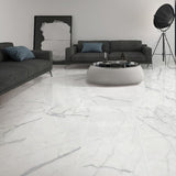 The Calacatta Deluxe Super White porcelain tile creates a marble like effect on your floors and walls, that gives your space a sophisticated and elegant feel. It is characterised by its stylish look and is available in polished finish.