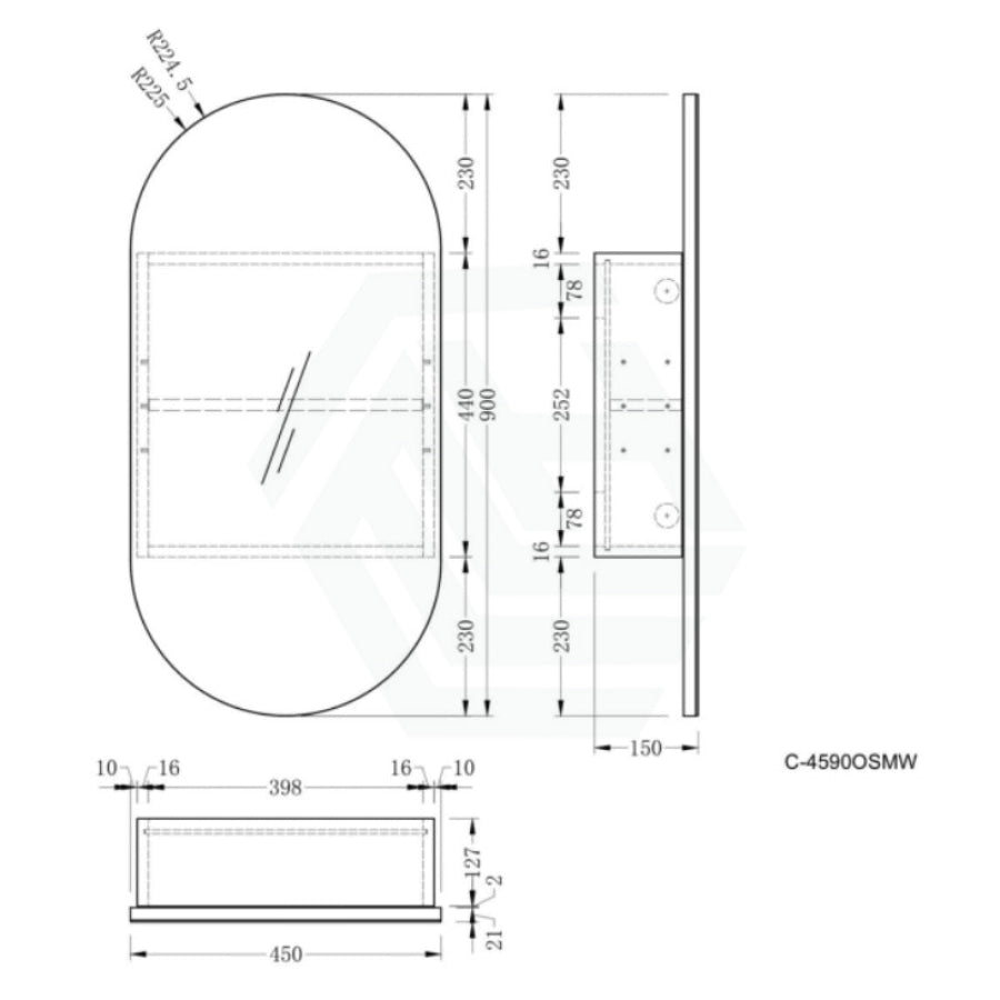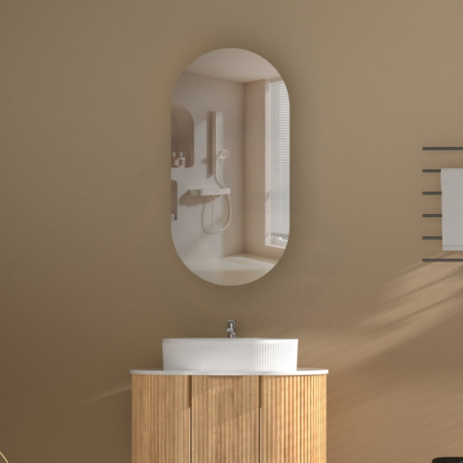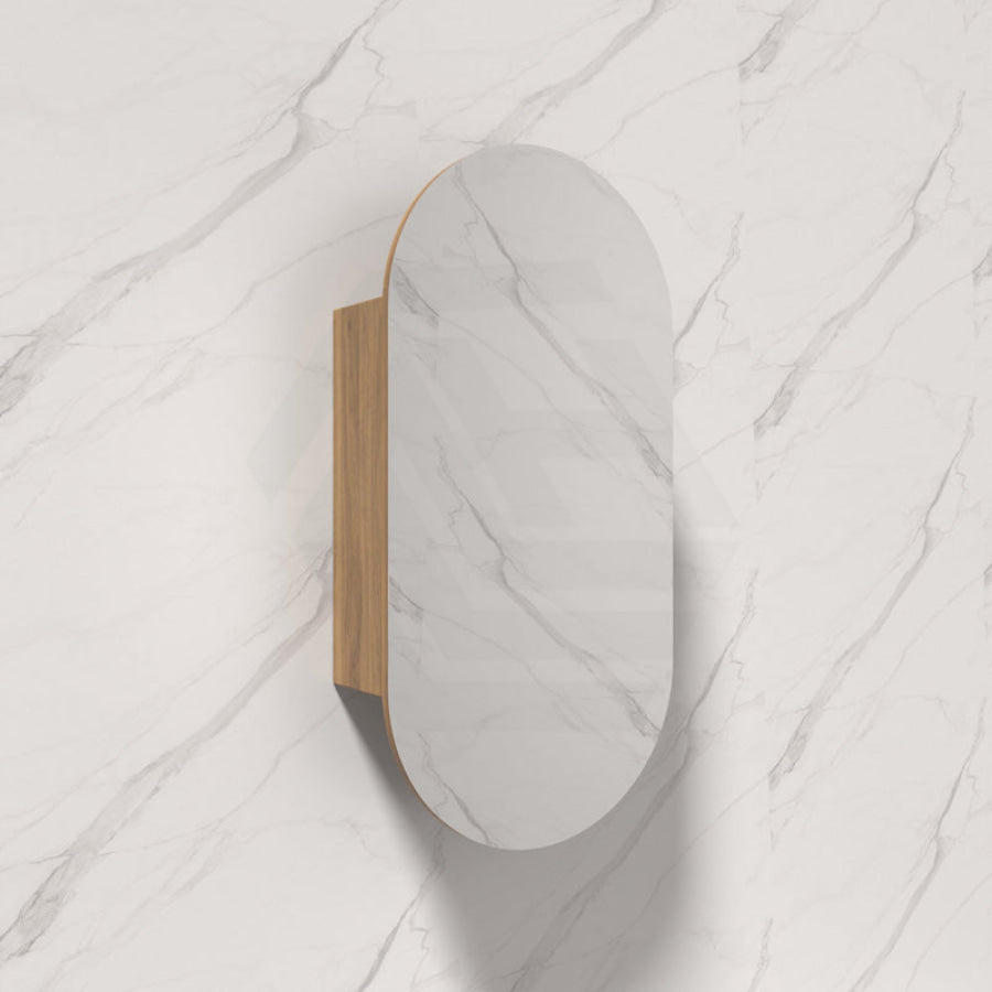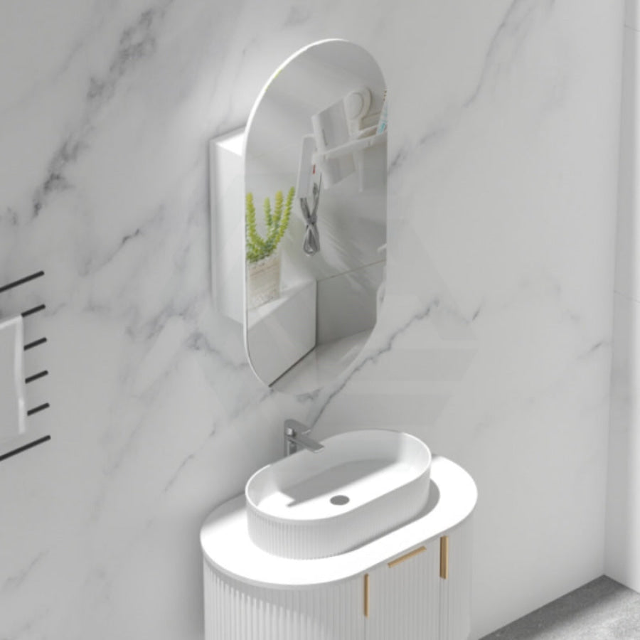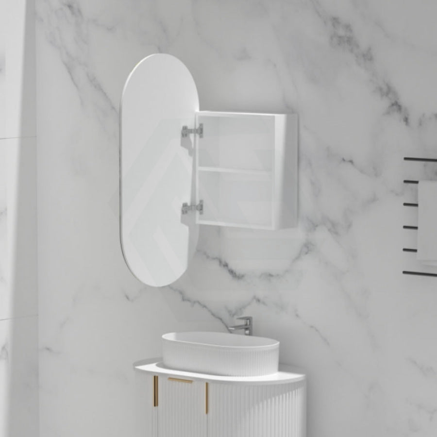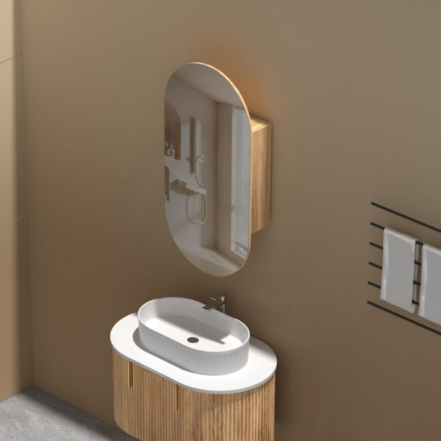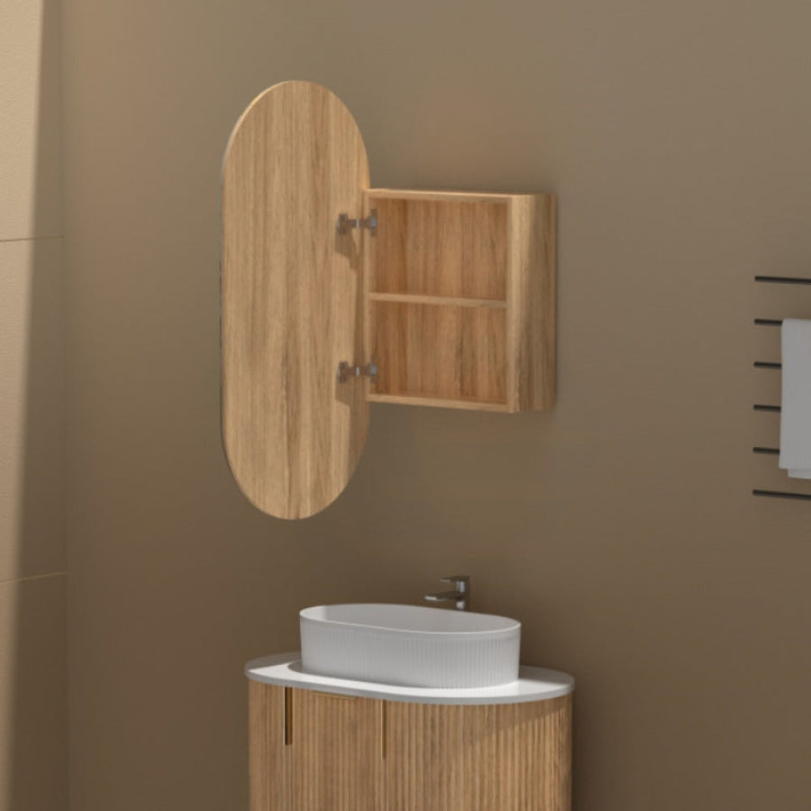 450x900mm Carysil Plywood Wall Hung Oval Shaving Mirror Cabinet Matt White/Walnut for Bathroom