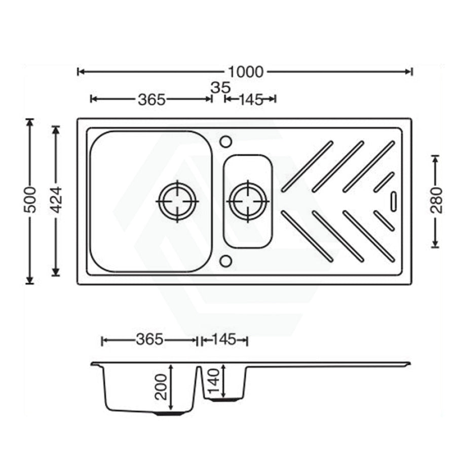 Premium granite quartz kitchen sink with 1000x500x200mm dimensions, featuring double bowls and drainboard. The 1¼ bowl design lets you wash and prep simultaneously. Durable, non-porous surface resists stains, scratches, and heat. Choose top or under-mount installation. Available in multiple colours to match your kitchen style.