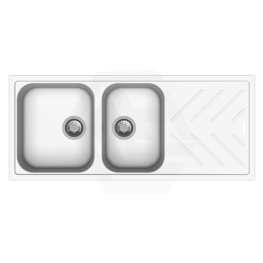 1160x500x200mm White Granite Quartz Stone 1 and 3/4 Kitchen Sink Double Bowls Drainboard Topmount