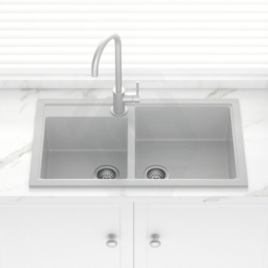 860x500x205mm Carysil Concrete Grey Double Bowl Granite Kitchen Sink Top/ Flush/ Under Mount