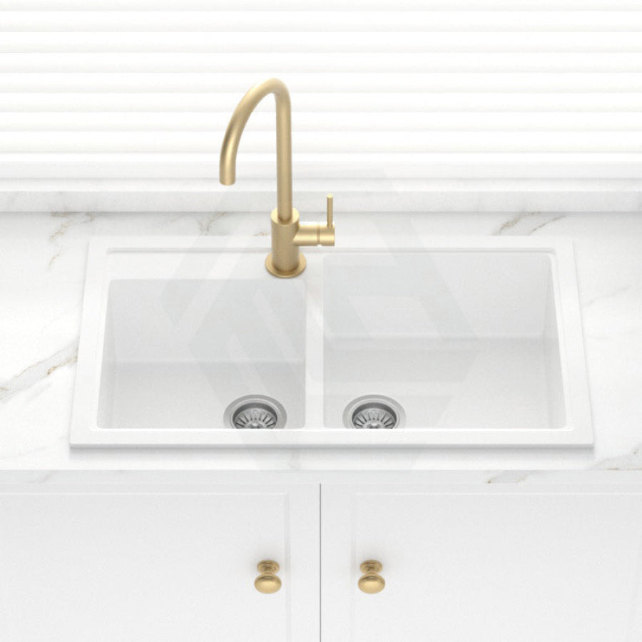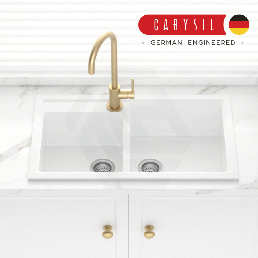 860x500x205mm Carysil White Double Bowl Granite Kitchen Sink Top/ Flush/ Under Mount