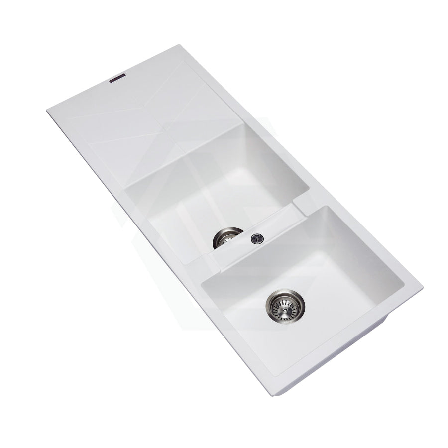 1160x500x210mm Carysil White Double Bowl Drainer Board Granite Kitchen Sink Top/ Flush Mount