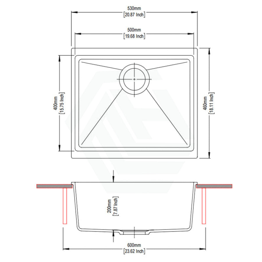530x460x200mm Carysil Black Single Bowl Granite Kitchen/ Laundry Sink Top/ Under Mount