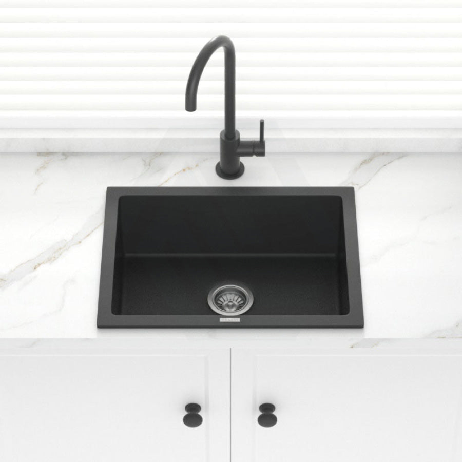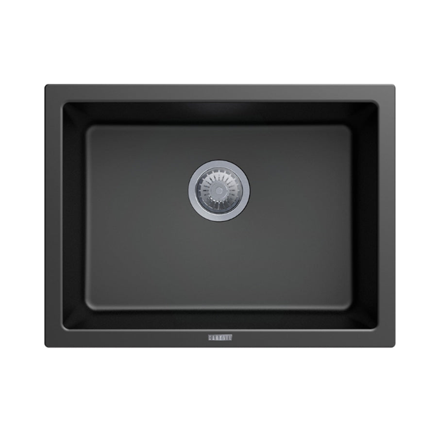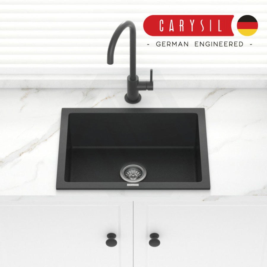 610x457x205mm Carysil Black Single Big Bowl Granite Kitchen/Laundry Sink Top/Flush/Under Mount