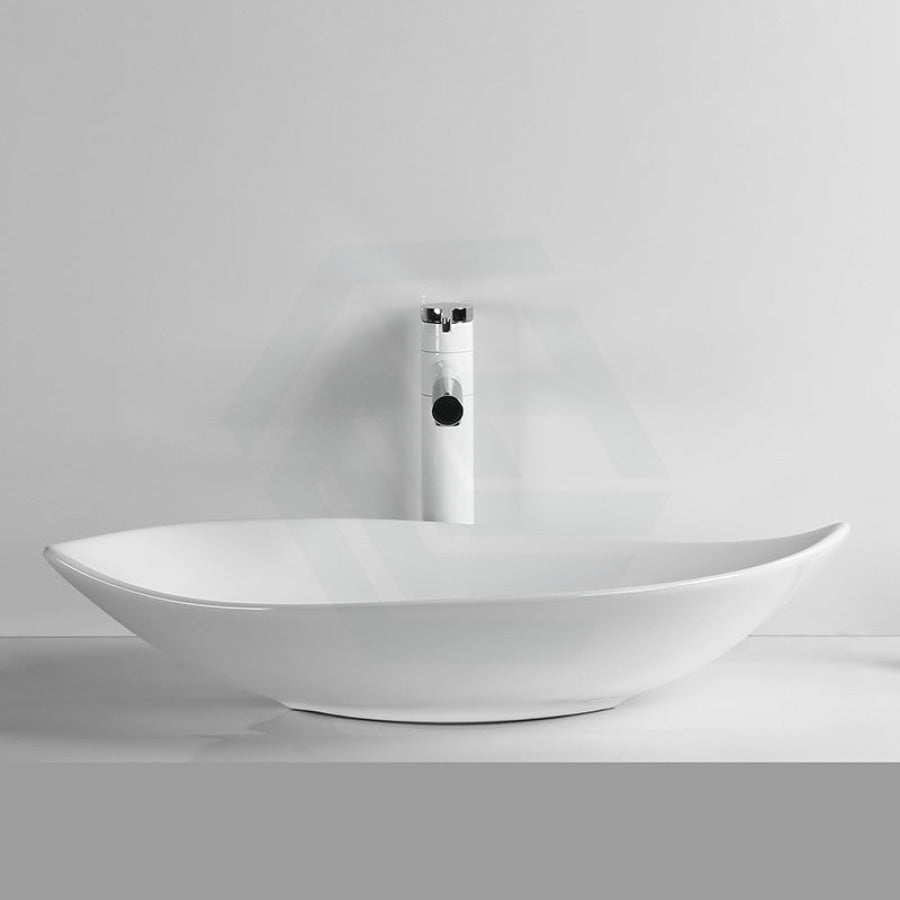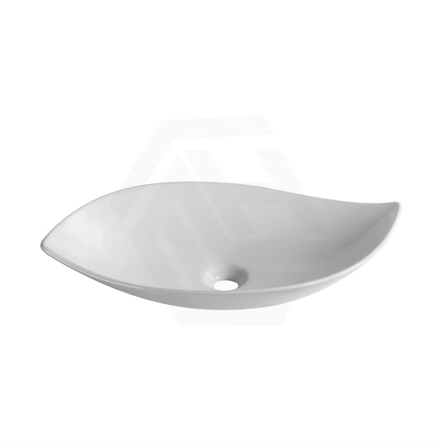 660x390x150mm Above Counter Ceramic Art Basin Special Leaf Shape Gloss White for Bathroom