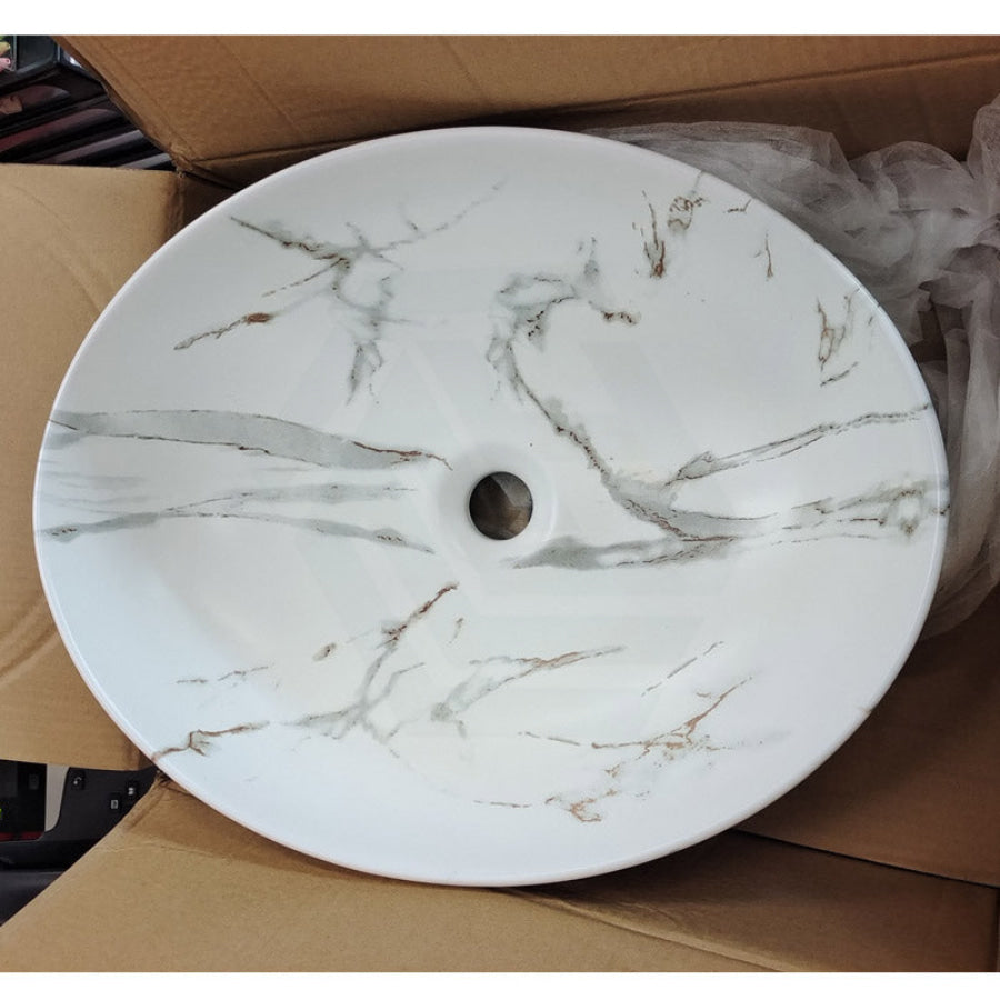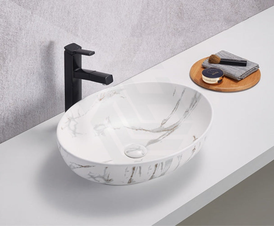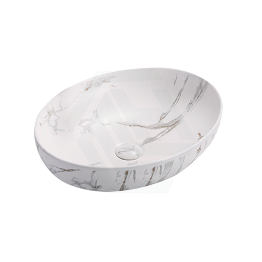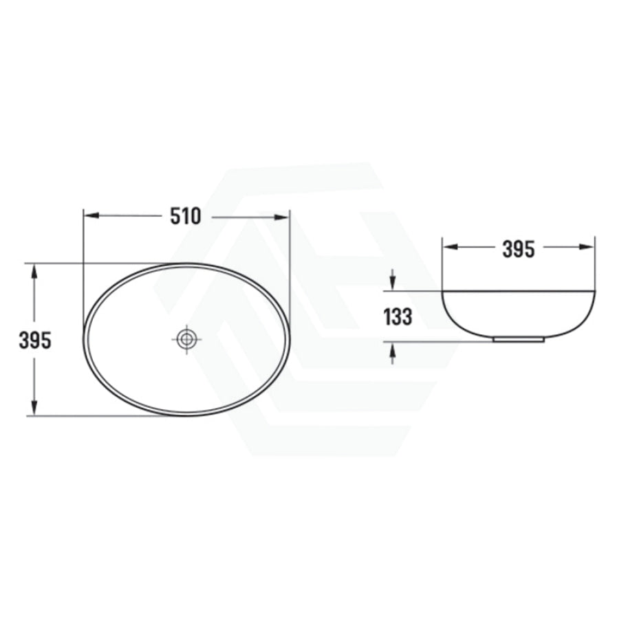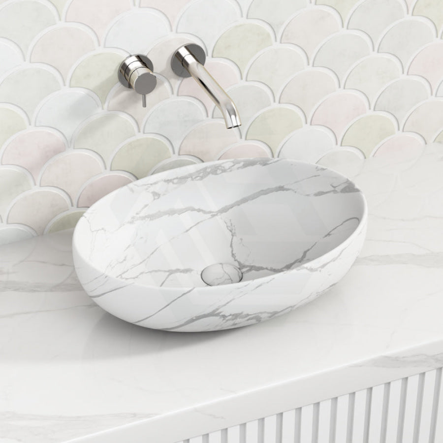 510x395x133mm Bathroom Wash Basin Oval Above Counter Matt White Carrara Ceramic