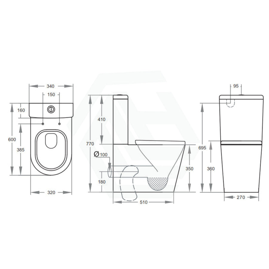 600x340x770mm Wall Faced Toilet Suite with Rimless Pan for Junior Back to wall