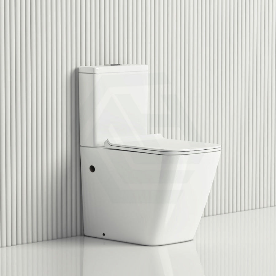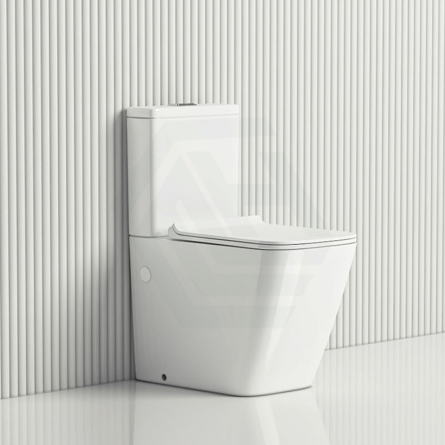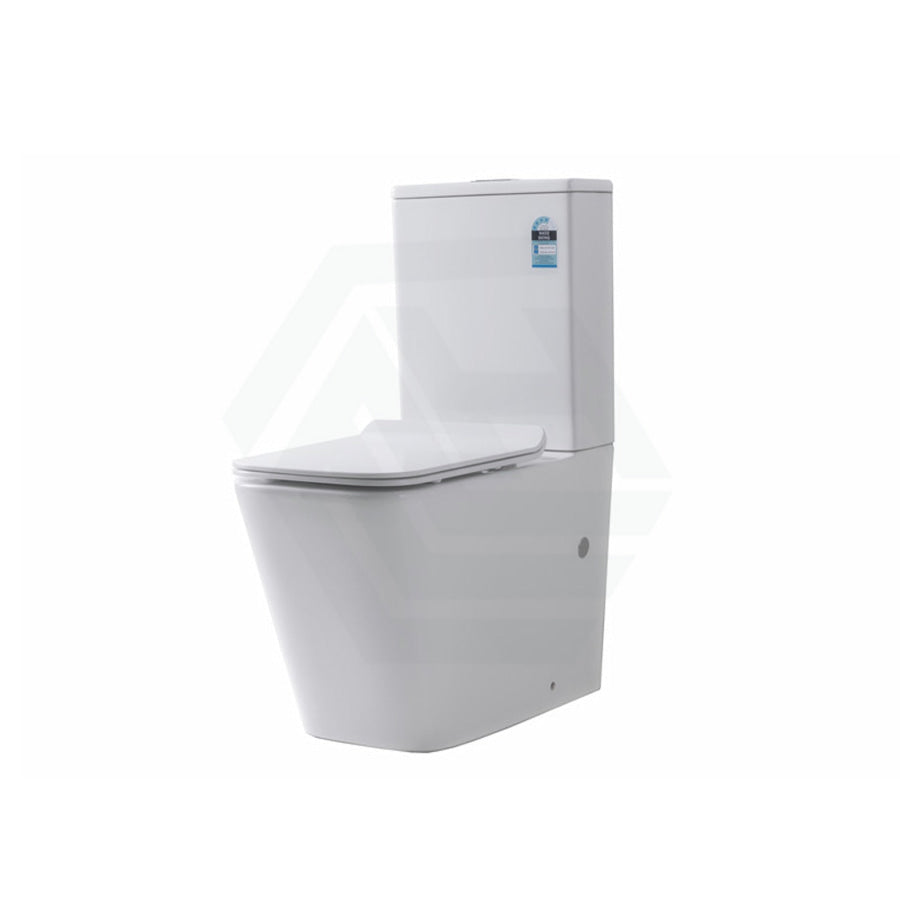 Premium grade white ceramic toilet suite with RIMLESS pan and heavy duty soft close seat. Wall face style with high quality including variable set out connector and pan fixing bracket. Dual flush design 4.5/3L with a 4 star WELS rating that exceeds Australian standard requirements.