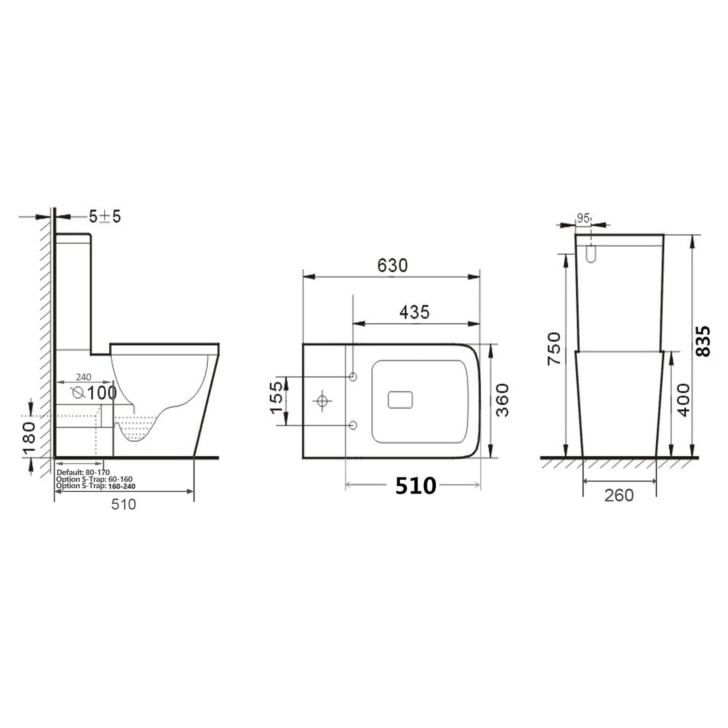 630x360x835mm Bathroom Rimless Back To Wall White Ceramic Toilet Suite