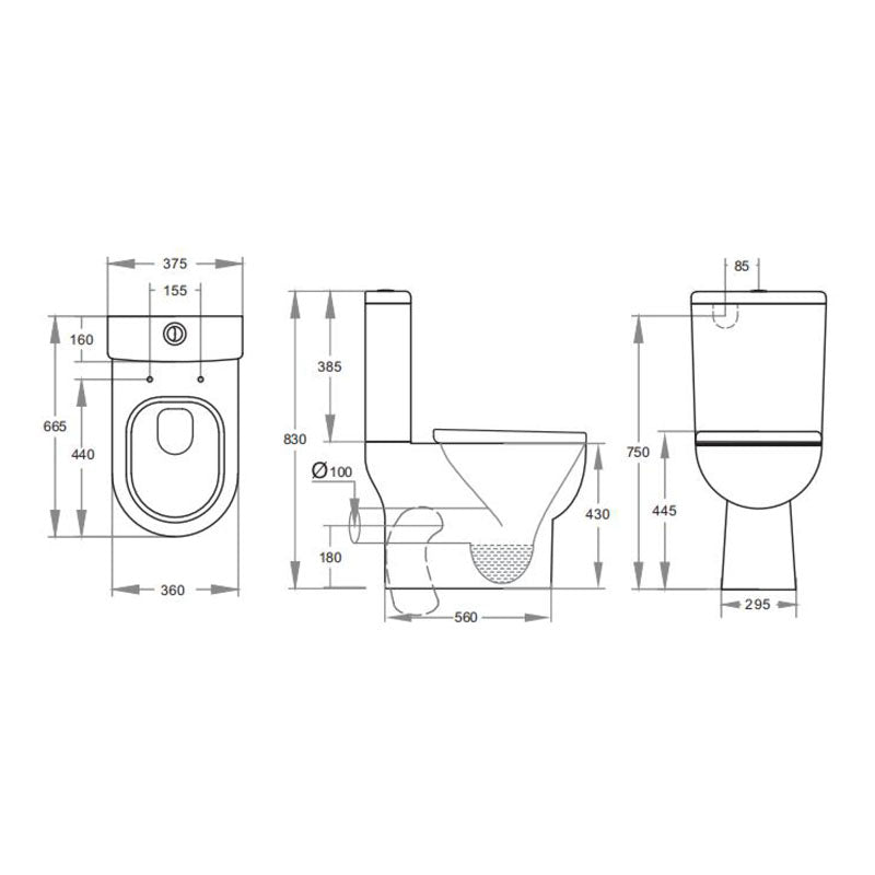 665x375x830mm Right or Left Hand Skew Trap Toilet Suite Box Rim Ceramic Back Left and Right Bottom Inlet