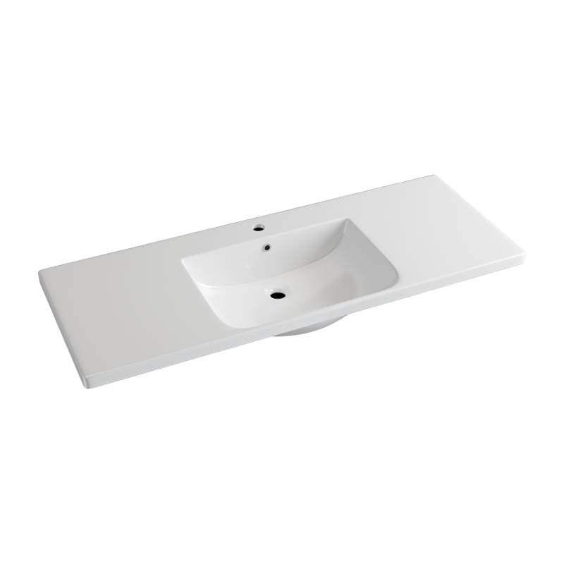 1205x460x165mm D Shape Ceramic Top for Bathroom Vanity Sleek High Gloss Single Bowl 1 Tap hole 1 Overflow Hole
