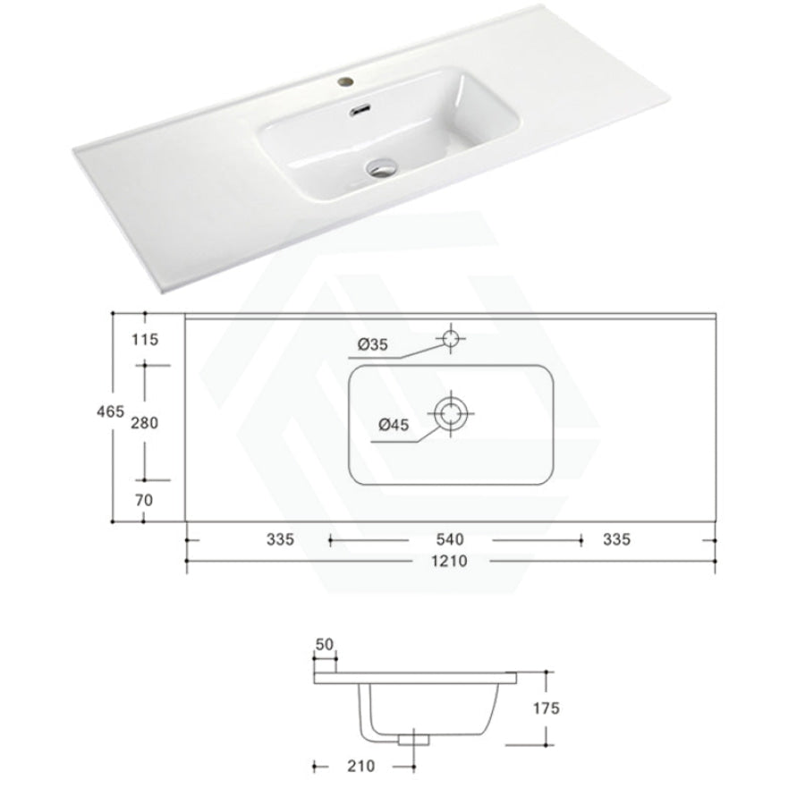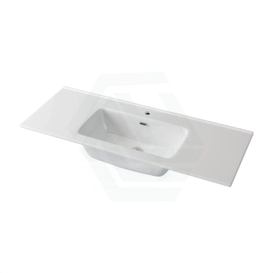 The 1210x465x175mm O Shape Ceramic Top for Bathroom Vanity Single Bowl 1 or 3 Tap Holes available Gloss White brings comfort and function together in the bathroom, equipped with soft closing design.