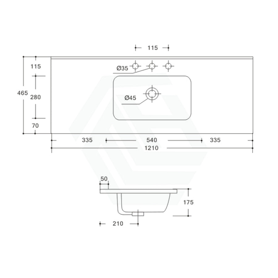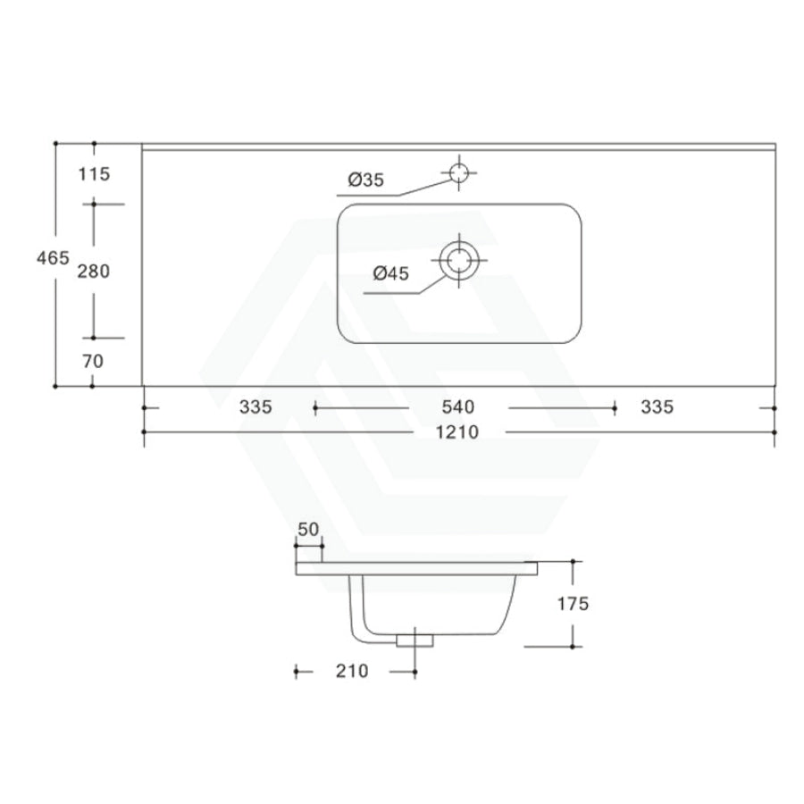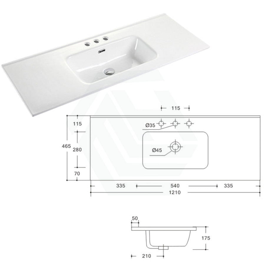 1210x465x175mm O Shape Ceramic Top for Bathroom Vanity Single Bowl 1 or 3 Tap Holes available Gloss White