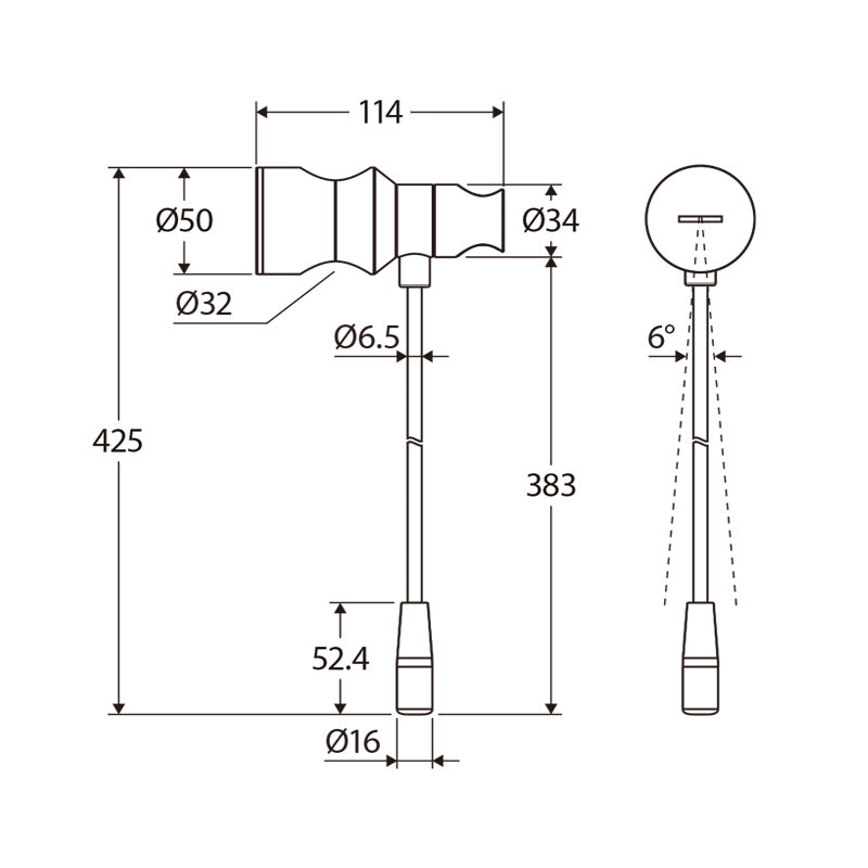 Ergonomic easy grip handle with 383 mm length for easy access by seated users