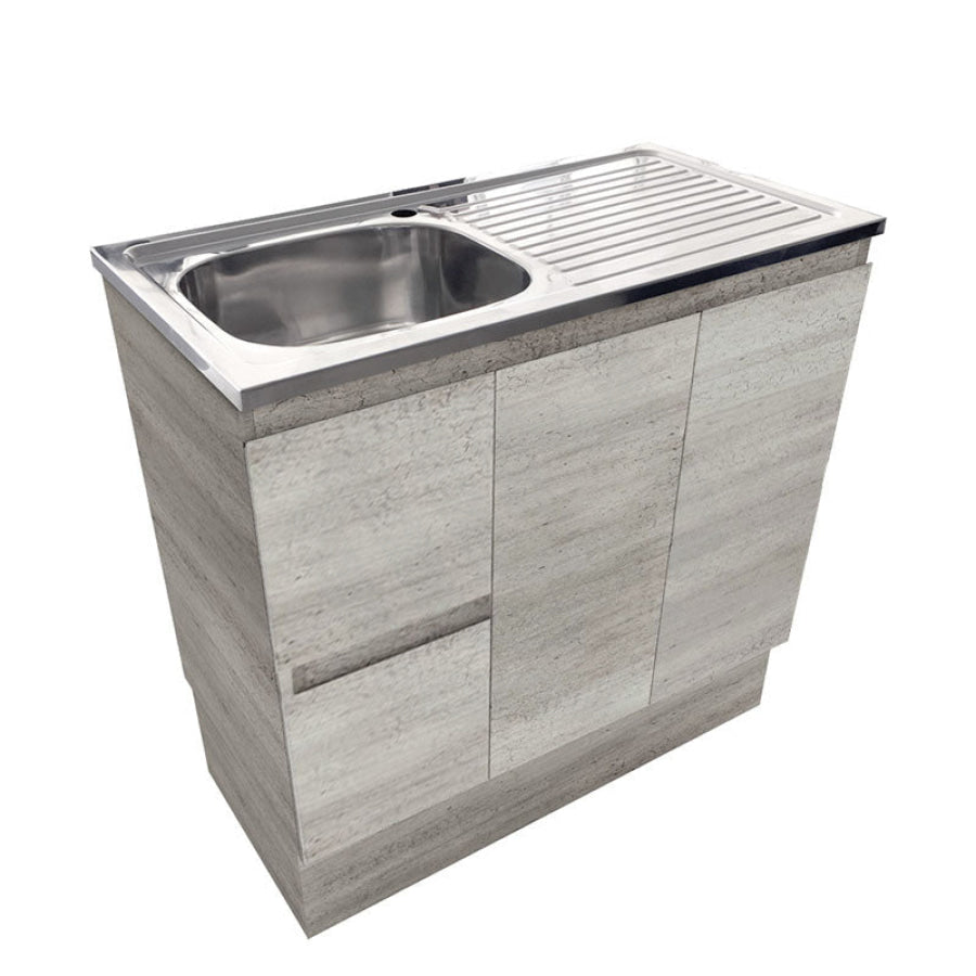 900mm Citi E0 Board Industrial Oak Kitchen/Laundry Freestanding Kickboard Vanity with Stainless Steel Sink-Top