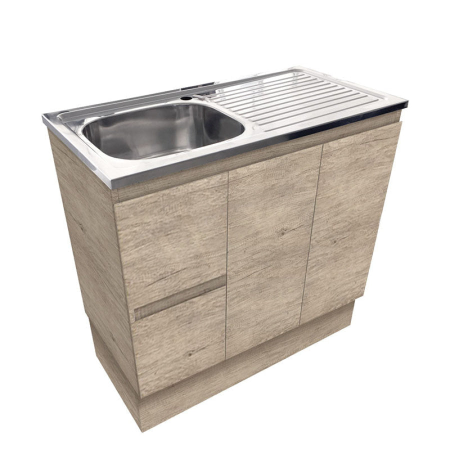 900mm Citi E0 Board Scandi Oak Kitchen/Laundry Freestanding Kickboard Vanity with Stainless Steel Sink-Top