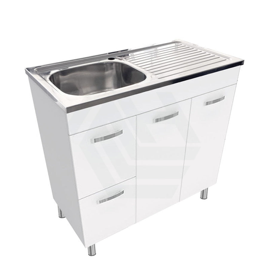 900mm Citi E0 Board Gloss White Kitchen/Laundry Freestanding with Legs Vanity with Stainless Steel Sink-Top