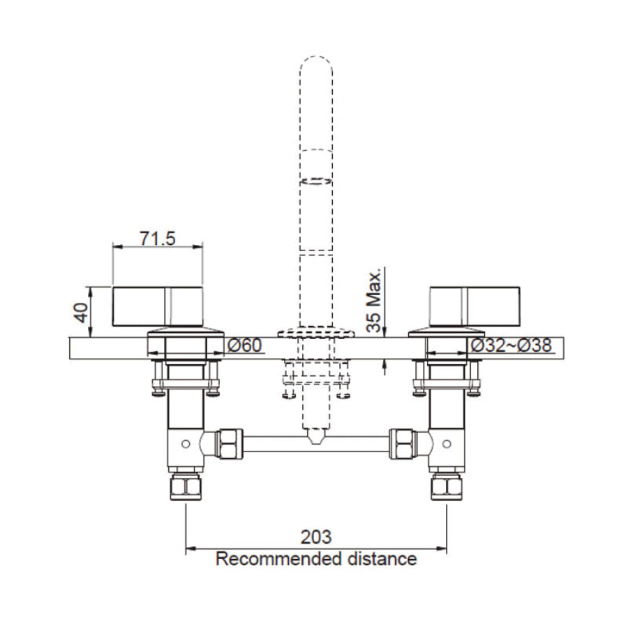 Two traditional lever handles allow for both volume and temperature control; Red/blue indexing.