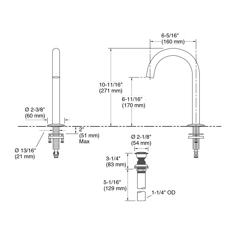 - Includes metal touch-activated drain with 1-1/4" tailpiece