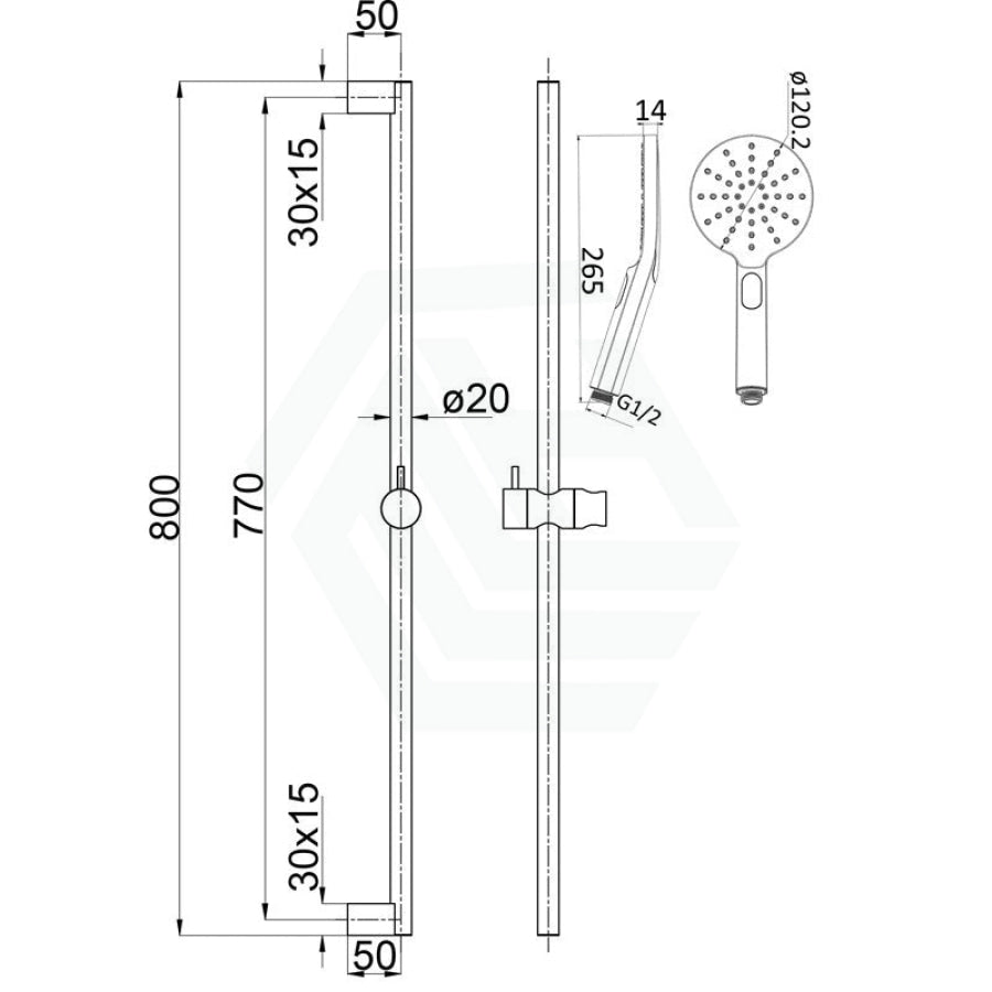 - 1x Shower rail with water inlet, 1x 3 Functions handheld shower