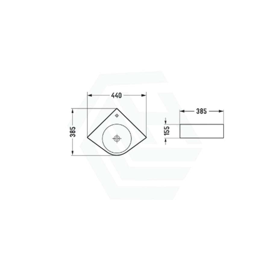 440x385x155mm Gloss White Corner Wall Hung & Above Counter Basin Ceramic