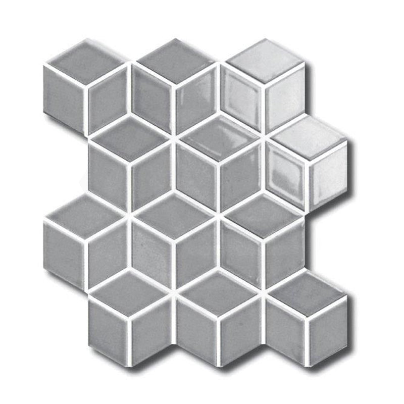Cottage Diamond Cube Mosaic Sheet Matt Grey 309x268mm Tile (83x48mm Cube Piece)