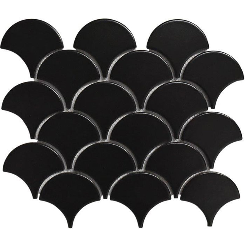 Cottage Fan Shape Mosaic Sheet Gloss Black 255x219mm Tile (70x75mm Fan Shape Piece)
