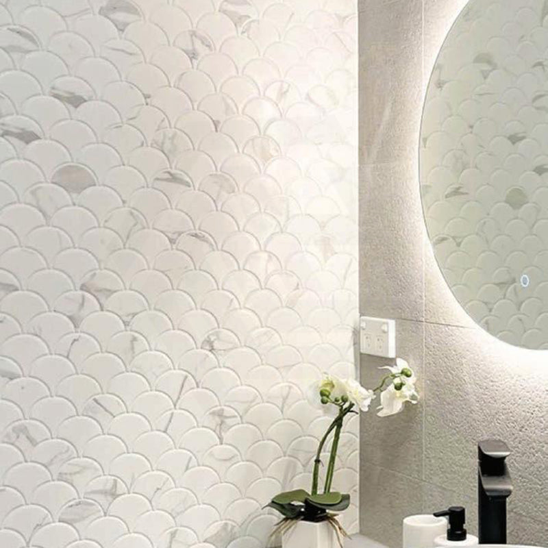 Cottage Fan Shape Mosaic Sheet Carrara Matt White 255x219mm Tile (70x75mm Fan Shape Piece)