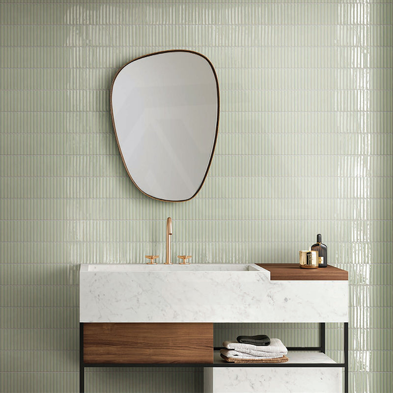 The Cottage Pencil Mosaic Sheet Gloss Tile in Aqua Green combines glossy elegance with the durability of porcelain, each sheet features slender 13x95mm pencil pieces, creating a timeless mosaic look. Perfectly suited for bathrooms, kitchens, laundries, and splashbacks, these tiles offer a refined finish that enhances any wall with subtle color and effortless style.