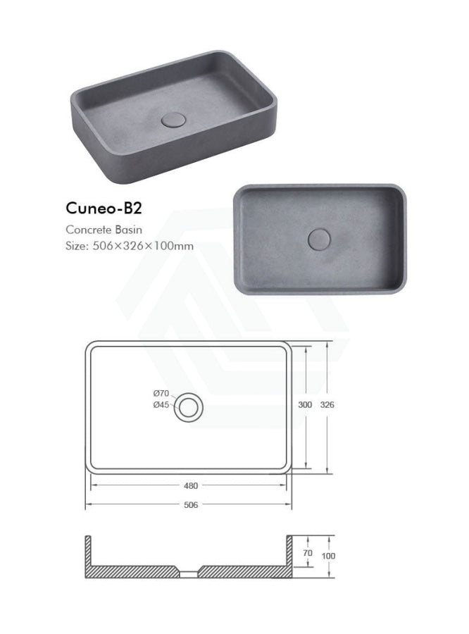 The 506x326x100mm Rectangle concrete basin French Grey BK-Cuneo-B2 creating a striking statement for bathrooms and available in a wide range of coloured pigments.