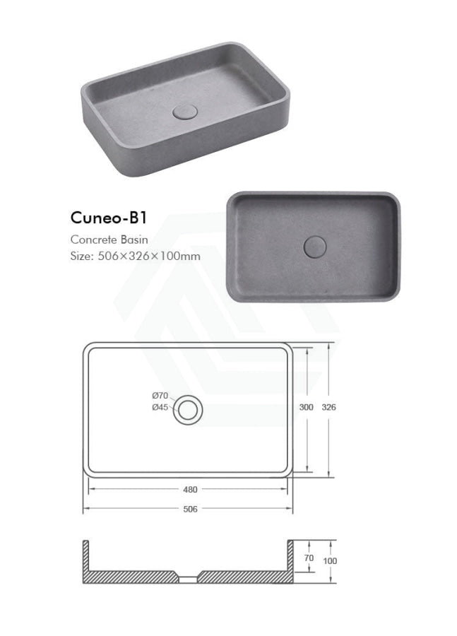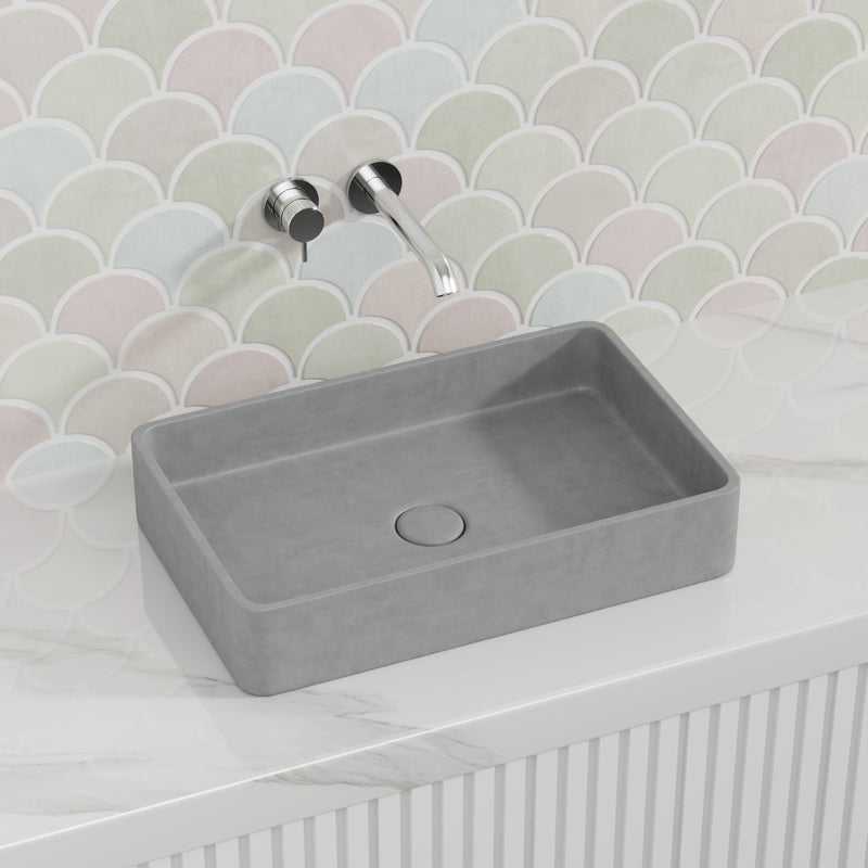 The 506x326x100mm Rectangle concrete basin Grey Mist BK-Cuneo-B1 creating a striking statement for bathrooms and available in a wide range of coloured pigments.